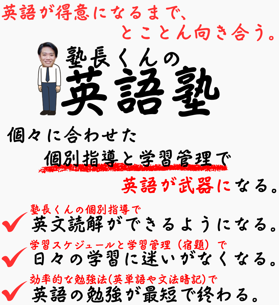 英語科目が武器になる」まで、塾長くんがとことん向き合います。